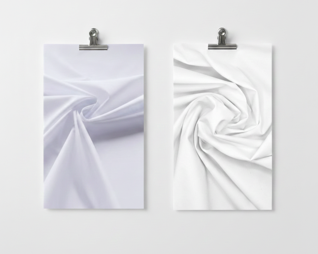 Los blancos luminosos funcionan como un lienzo puro sobre el cual las texturas y bordados de la colección cobran protagonismo, recordando los relieves sutiles de la arquitectura barroca. La superficie lisa y flexible de la licra potencia la elegancia minimalista de las piezas, permitiendo que cada pliegue y movimiento refleje una estética romántica, etérea y sofisticada.