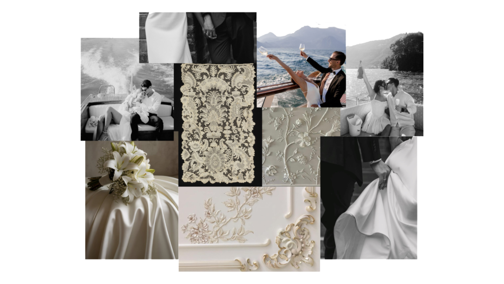 En conjunto, la paleta crea una narrativa visual luminosa, delicada y refinada, donde la pureza del blanco se convierte en símbolo de elegancia atemporal y de los momentos íntimos y románticos que inspiran la colección.